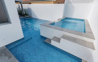 Imagine being able to indulge in a warm relaxing spa after a long day at work and then cooling off in the refreshing waters of your very own backyard resort. The combination of a swimming pool and spa makes for an amazing backyard sanctuary which homeowners can enjoy all year round – Swim and splash on those hot summer days or have relaxing soak in the spa on a cool winter evening. We can custom design and build the perfect pool with in built spa for your home, allowing you to enjoy the benefits of both a pool and spa integrated together, creating a beautiful and valuable addition to your home.
